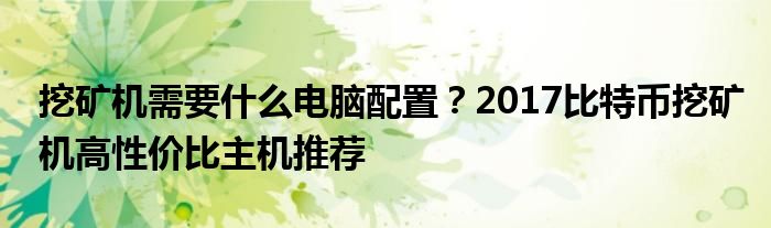 挖礦機配置要求高嗎 1.5萬元2017比特幣挖礦機配置推薦