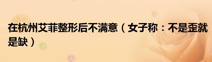大家好,小安來為大家解答以上的問題在杭州艾菲整形后不滿意,女子稱:不是歪就是缺這個很多人還不知道,現在讓我們一起來看看吧!