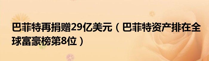 大家好,綜合小編來為大家講解下。巴菲特再捐贈29億美元,巴菲特資產排在全球富豪榜第8位很多人還不知道,現在讓我們一起來看看吧!