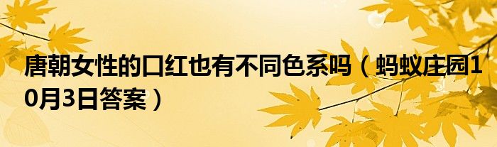 每天的螞蟻莊園里,我們可以回答莊園小課堂的問題,答對獲得180g飼料,答錯獲得30g飼料。10月3日每日問題是:唐朝女性的口紅也有不同色系嗎如果大家不清楚的答案的話,下面小編就給大家?guī)碓敿毚鸢福胍@得飼料小伙伴千萬不要錯過哦!