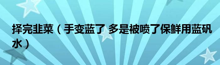 大家好,小安來為大家解答以上的問題擇完韭菜,手變藍了 多是被噴了保鮮用藍礬水這個很多人還不知道,現在讓我們一起來看看吧!