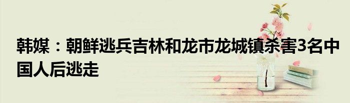 【環球時報綜合報道】韓國KBS電視臺28日獨家報道稱,24日,3名朝鮮逃兵越過中朝邊界,在中國吉林省和龍市龍城鎮殺害3名中國邊民后逃走。《環球時報》記者28日致電龍城鎮派出所,該所值班人員稱并不知道此事。
