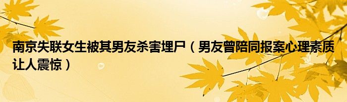 大家好,綜合小編來為大家講解下。南京失聯女生被其男友殺害埋尸,男友曾陪同報案心理素質讓人震驚很多人還不知道,現在讓我們一起來看看吧!