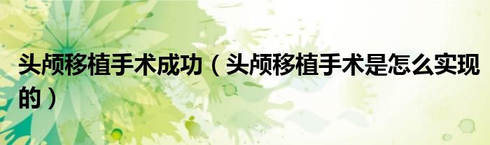 大家好,綜合小編來為大家講解下。頭顱移植手術成功,頭顱移植手術是怎么實現的很多人還不知道,現在讓我們一起來看看吧!