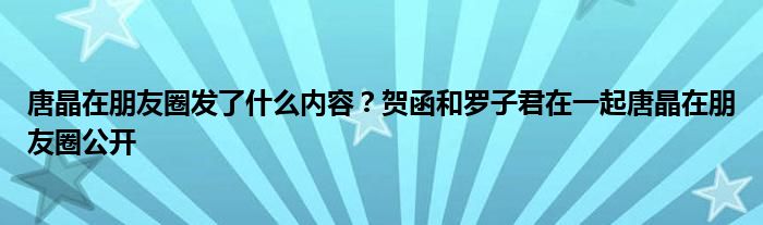 大家好,小安來為大家解答以上的問題唐晶在朋友圈發了什么內容?賀函和羅子君在一起唐晶在朋友圈公開這個很多人還不知道,現在讓我們一起來看看吧!