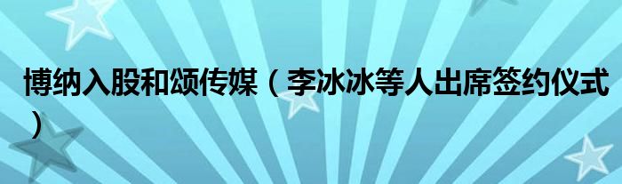 大家好,綜合小編來為大家講解下。博納入股和頌傳媒,李冰冰等人出席簽約儀式很多人還不知道,現(xiàn)在讓我們一起來看看吧!