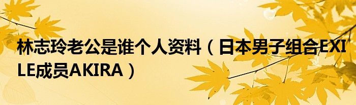 大家好,綜合小編來為大家講解下。林志玲老公是誰個人資料,日本男子組合EXILE成員AKIRA很多人還不知道,現(xiàn)在讓我們一起來看看吧!