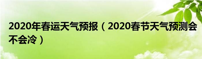 大家好,小安來為大家解答以上的問題2020年春運天氣預報,2020春節天氣預測會不會冷這個很多人還不知道,現在讓我們一起來看看吧!