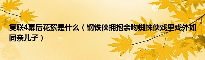 近日復(fù)聯(lián)4幕后花絮被曝出來,受到了很多網(wǎng)友的關(guān)注,瞬時(shí)被推上了熱搜,復(fù)聯(lián)4中蜘蛛俠和鋼鐵俠重逢后還有幕后花絮,鋼鐵俠親吻蜘蛛俠的鏡頭被刪掉了。本篇文章小編就為大家?guī)砹藦?fù)聯(lián)4幕后花絮的具體內(nèi)容,一起來看看吧。