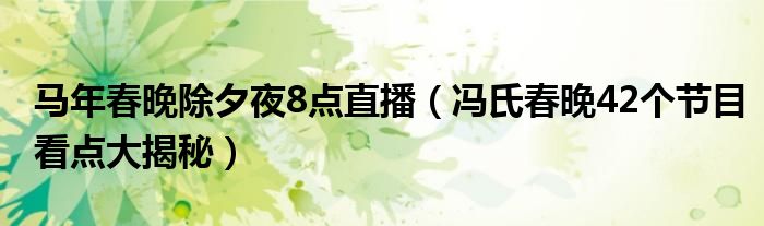大家好,小安來為大家解答以上的問題馬年春晚除夕夜8點(diǎn)直播,馮氏春晚42個(gè)節(jié)目看點(diǎn)大揭秘這個(gè)很多人還不知道,現(xiàn)在讓我們一起來看看吧!