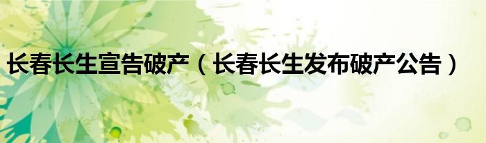 大家好,綜合小編來為大家講解下。長春長生宣告破產,長春長生發布破產公告很多人還不知道,現在讓我們一起來看看吧!