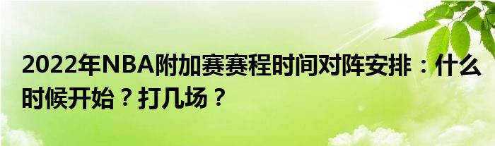 2022年NBA附加賽具體賽程時間對陣安排如下: