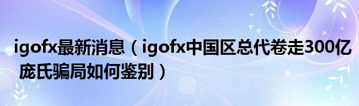 大家好,小安來(lái)為大家解答以上的問(wèn)題igofx最新消息,igofx中國(guó)區(qū)總代卷走300億 龐氏騙局如何鑒別這個(gè)很多人還不知道,現(xiàn)在讓我們一起來(lái)看看吧!