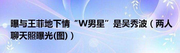 大家好,小安來為大家解答以上的問題曝與王菲地下情“W男星”是吳秀波,兩人聊天照曝光(圖)這個很多人還不知道,現(xiàn)在讓我們一起來看看吧!