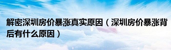 大家好,綜合小編來(lái)為大家講解下。解密深圳房?jī)r(jià)暴漲真實(shí)原因,深圳房?jī)r(jià)暴漲背后有什么原因很多人還不知道,現(xiàn)在讓我們一起來(lái)看看吧!