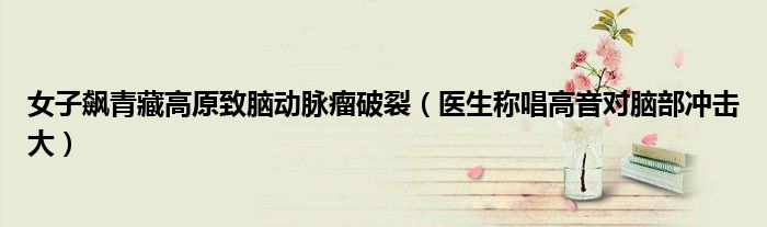 大家好,小安來為大家解答以上的問題女子飆青藏高原致腦動脈瘤破裂,醫生稱唱高音對腦部沖擊大這個很多人還不知道,現在讓我們一起來看看吧!