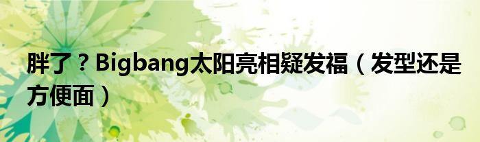 大家好,小安來為大家解答以上的問題胖了?Bigbang太陽亮相疑發(fā)福,發(fā)型還是方便面這個(gè)很多人還不知道,現(xiàn)在讓我們一起來看看吧!