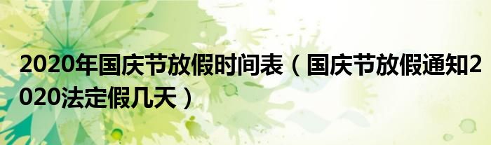 大家好,綜合小編來為大家講解下。2020年國慶節(jié)放假時間表,國慶節(jié)放假通知2020法定假幾天很多人還不知道,現(xiàn)在讓我們一起來看看吧!
