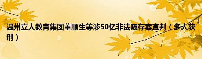 大家好,小安來為大家解答以上的問題溫州立人教育集團(tuán)董順生等涉50億非法吸存案宣判,多人獲刑這個很多人還不知道,現(xiàn)在讓我們一起來看看吧!