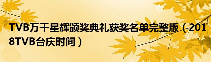 大家好,小安來為大家解答以上的問題TVB萬千星輝頒獎典禮獲獎名單完整版,2018TVB臺慶時間這個很多人還不知道,現在讓我們一起來看看吧!