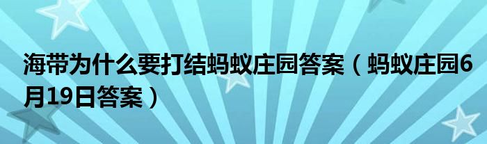 大家好,小安來為大家解答以上的問題海帶為什么要打結螞蟻莊園答案,螞蟻莊園6月19日答案這個很多人還不知道,現在讓我們一起來看看吧!