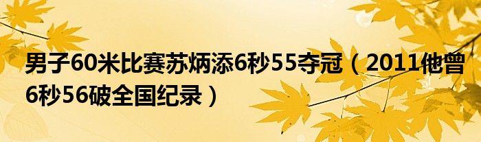 大家好,小安來為大家解答以上的問題男子60米比賽蘇炳添6秒55奪冠,2011他曾6秒56破全國紀錄這個很多人還不知道,現在讓我們一起來看看吧!