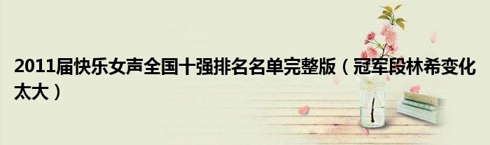 大家好,小安來為大家解答以上的問題2011屆快樂女聲全國十強排名名單完整版,冠軍段林希變化太大這個很多人還不知道,現在讓我們一起來看看吧!