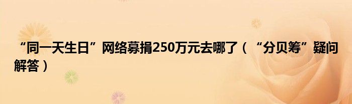 大家好,小安來為大家解答以上的問題“同一天生日”網絡募捐250萬元去哪了,“分貝籌”疑問解答這個很多人還不知道,現在讓我們一起來看看吧!