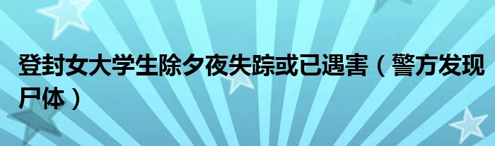 大家好,小安來為大家解答以上的問題登封女大學(xué)生除夕夜失蹤或已遇害,警方發(fā)現(xiàn)尸體這個很多人還不知道,現(xiàn)在讓我們一起來看看吧!