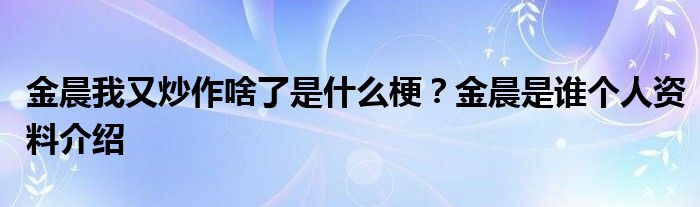 大家好,小安來為大家解答以上的問題金晨我又炒作啥了是什么梗?金晨是誰個人資料介紹這個很多人還不知道,現在讓我們一起來看看吧!