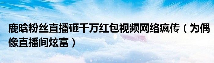 大家好,小安來為大家解答以上的問題鹿晗粉絲直播砸千萬紅包視頻網(wǎng)絡(luò)瘋傳,為偶像直播間炫富這個很多人還不知道,現(xiàn)在讓我們一起來看看吧!