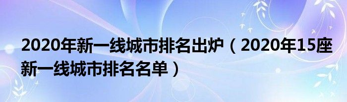 大家好,綜合小編來為大家講解下。2020年新一線城市排名出爐,2020年15座新一線城市排名名單很多人還不知道,現在讓我們一起來看看吧!