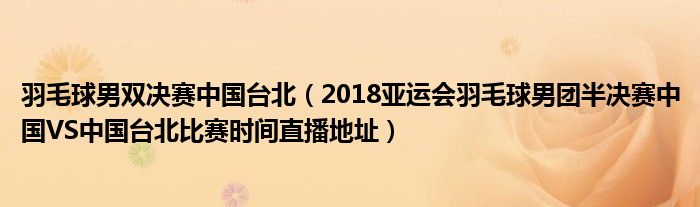 大家好,綜合小編來為大家講解下。羽毛球男雙決賽中國臺北,2018亞運會羽毛球男團半決賽中國VS中國臺北比賽時間直播地址很多人還不知道,現(xiàn)在讓我們一起來看看吧!