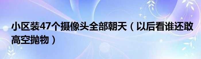 大家好,綜合小編來為大家講解下。小區裝47個攝像頭全部朝天,以后看誰還敢高空拋物很多人還不知道,現在讓我們一起來看看吧!