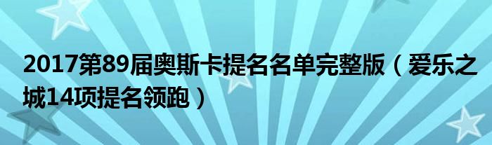大家好,小安來為大家解答以上的問題2017第89屆奧斯卡提名名單完整版,愛樂之城14項提名領跑這個很多人還不知道,現在讓我們一起來看看吧!
