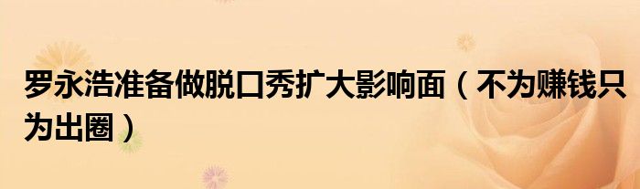 大家好,小安來為大家解答以上的問題羅永浩準備做脫口秀擴大影響面,不為賺錢只為出圈這個很多人還不知道,現在讓我們一起來看看吧!