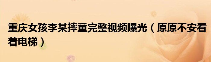大家好,小安來為大家解答以上的問題重慶女孩李某摔童完整視頻曝光,原原不安看著電梯這個很多人還不知道,現在讓我們一起來看看吧!