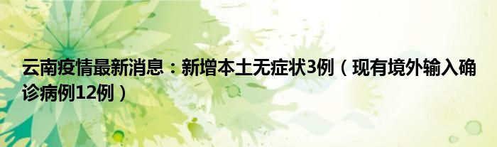 大家好,小安來為大家解答以上的問題云南疫情最新消息:新增本土無癥狀3例,現(xiàn)有境外輸入確診病例12例這個(gè)很多人還不知道,現(xiàn)在讓我們一起來看看吧!