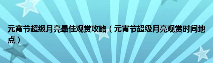 大家好,綜合小編來為大家講解下。元宵節超級月亮最佳觀賞攻略,元宵節超級月亮觀賞時間地點很多人還不知道,現在讓我們一起來看看吧!