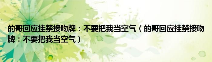 大家好,綜合小編來為大家講解下。的哥回應掛禁接吻牌:不要把我當空氣,的哥回應掛禁接吻牌:不要把我當空氣很多人還不知道,現在讓我們一起來看看吧!