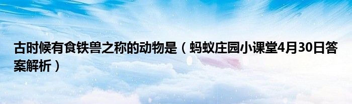 大家好,綜合小編來為大家講解下。古時(shí)候有食鐵獸之稱的動物是,螞蟻莊園小課堂4月30日答案解析很多人還不知道,現(xiàn)在讓我們一起來看看吧!