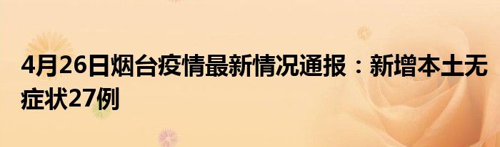大家好,小安來(lái)為大家解答以上的問(wèn)題4月26日煙臺(tái)疫情最新情況通報(bào):新增本土無(wú)癥狀27例這個(gè)很多人還不知道,現(xiàn)在讓我們一起來(lái)看看吧!