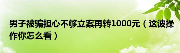 大家好,綜合小編來為大家講解下。男子被騙擔心不夠立案再轉1000元,這波操作你怎么看很多人還不知道,現在讓我們一起來看看吧!