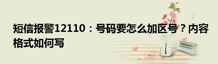 大家好,小安來為大家解答以上的問題短信報警12110:號碼要怎么加區號?內容格式如何寫這個很多人還不知道,現在讓我們一起來看看吧!