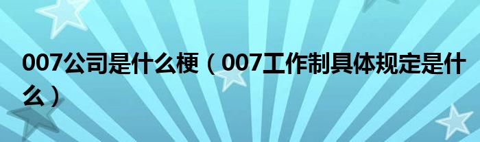 大家好,小安來為大家解答以上的問題007公司是什么梗,007工作制具體規(guī)定是什么這個很多人還不知道,現(xiàn)在讓我們一起來看看吧!
