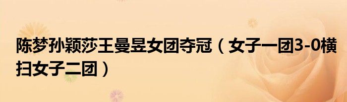 大家好,綜合小編來為大家講解下。陳夢孫穎莎王曼昱女團奪冠,女子一團3-0橫掃女子二團很多人還不知道,現(xiàn)在讓我們一起來看看吧!