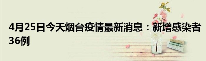 大家好,小安來為大家解答以上的問題4月25日今天煙臺疫情最新消息:新增感染者36例這個(gè)很多人還不知道,現(xiàn)在讓我們一起來看看吧!