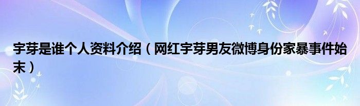 大家好,小安來為大家解答以上的問題宇芽是誰個人資料介紹,網紅宇芽男友微博身份家暴事件始末這個很多人還不知道,現在讓我們一起來看看吧!