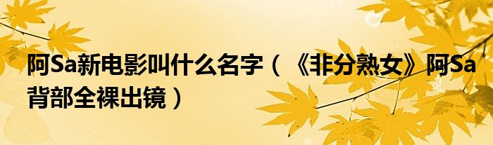 大家好,小安來為大家解答以上的問題阿Sa新電影叫什么名字,《非分熟女》阿Sa背部全裸出鏡這個很多人還不知道,現在讓我們一起來看看吧!