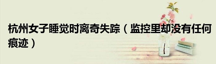 大家好,綜合小編來為大家講解下。杭州女子睡覺時離奇失蹤,監控里卻沒有任何痕跡很多人還不知道,現在讓我們一起來看看吧!